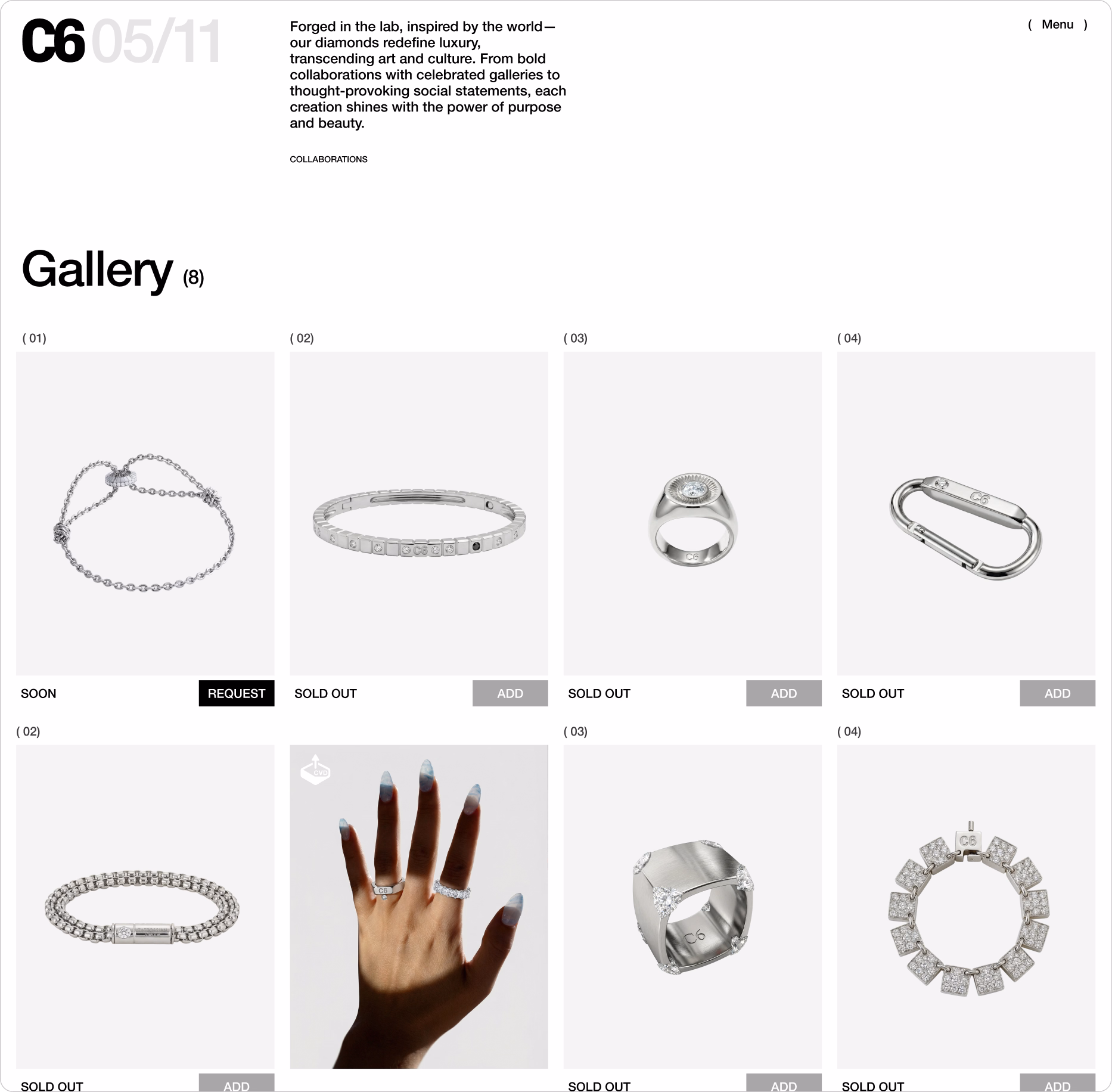 C6 is a jewelry lab creating pieces with lab-grown diamonds. Brand creates jewelry and art objects, embedding lab-grown diamonds — not as symbols of luxury, but as a material of the modern era. The piece of a modern art.